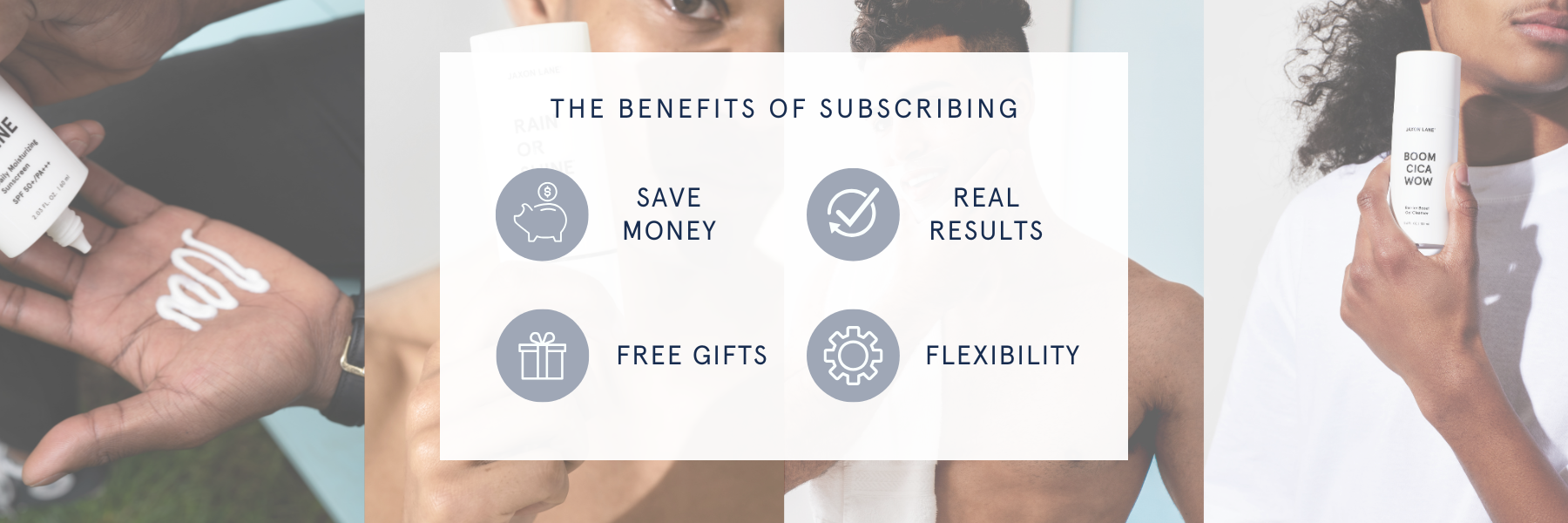 You save 15% on each order when you subscribe for any Jaxon Lane product. When you subscribe to a set, your savings go up to 25% - 10% off each product included in a set, and 15% off with your subscription.
