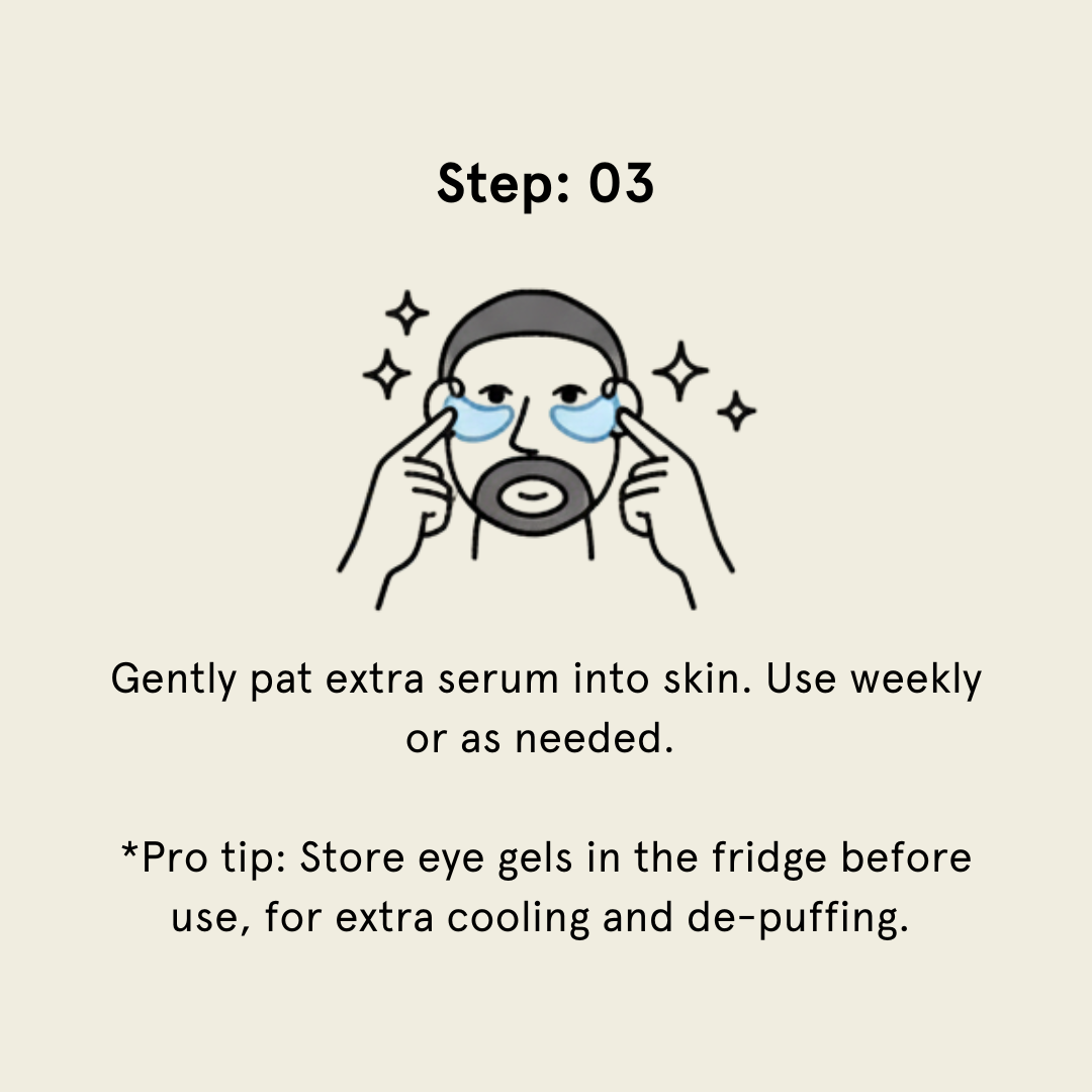 - Peel and apply one gel under each eye. (Pro tip: store in the fridge for an extra cooling effect.)