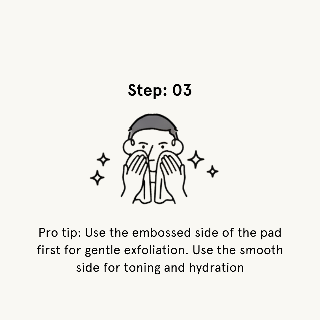 After washing face, gently wipe face with a toner pad, avoiding eye area. Gently pat to absorb extra toner on face. Use daily.